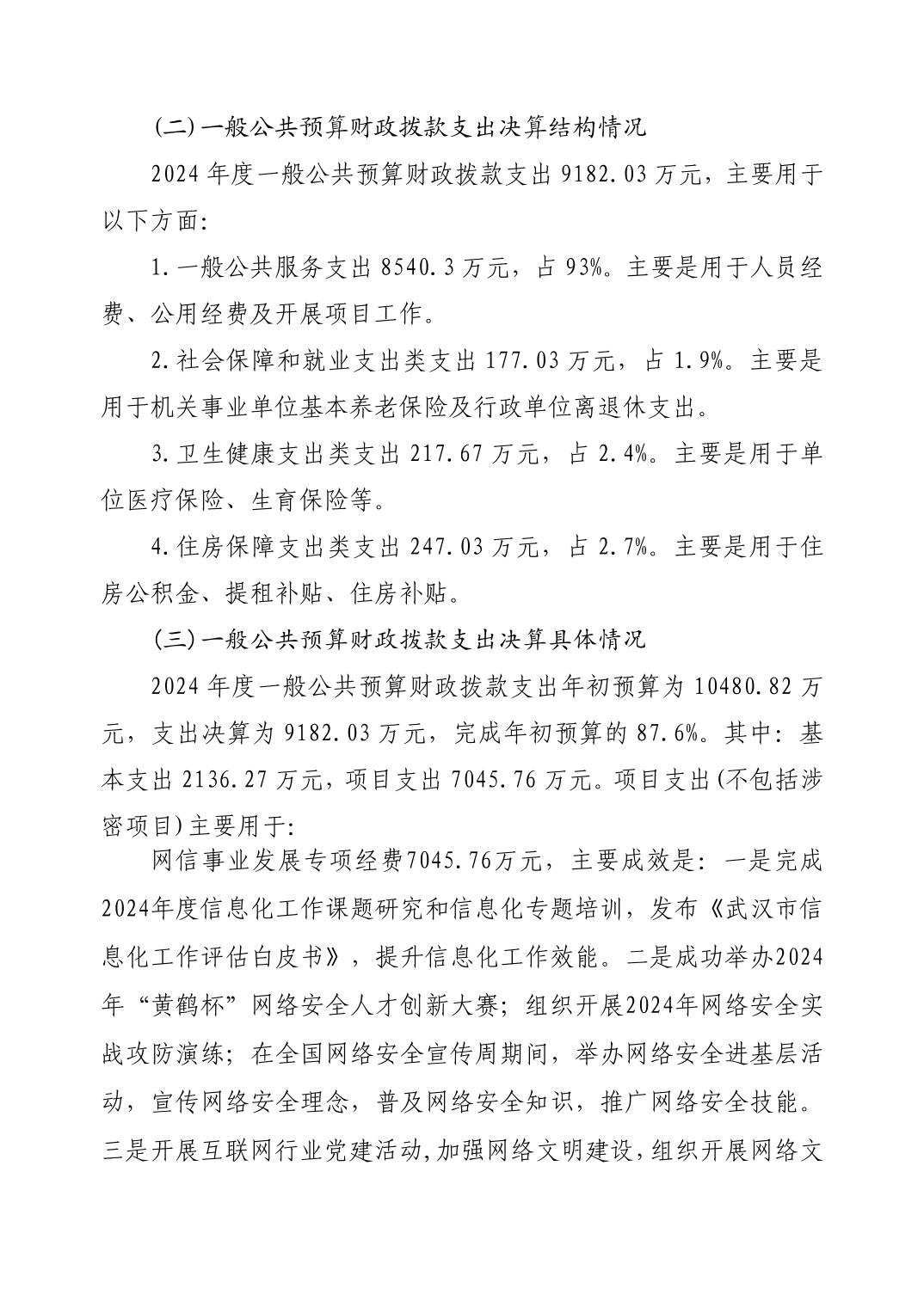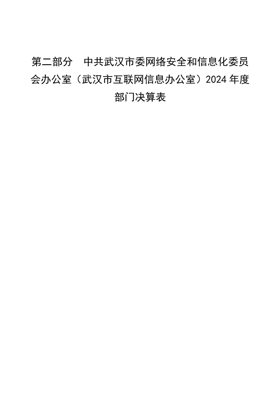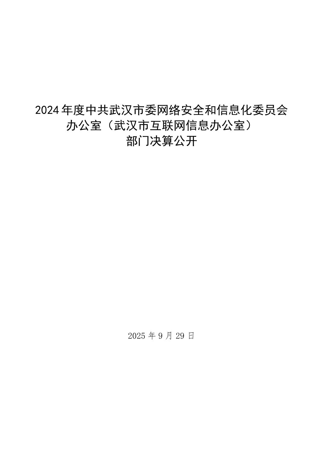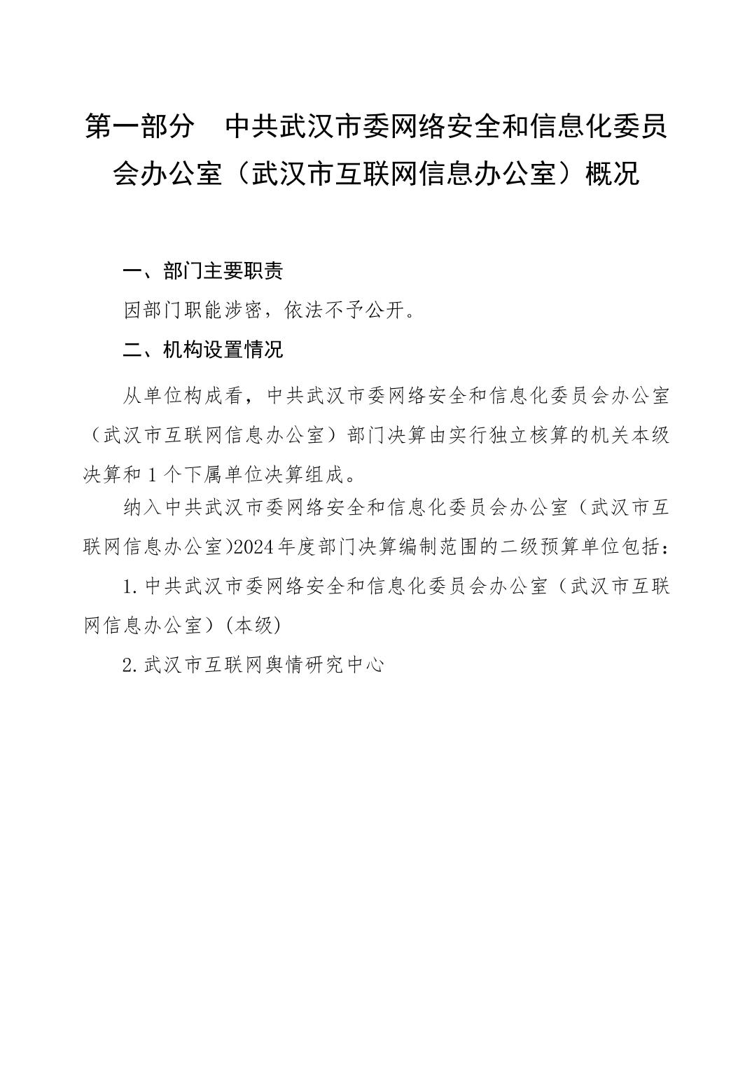 2024 年度中共武汉市委网络安全和信息化委员会办公室(武汉市互联网信息办公室)部门决算公开