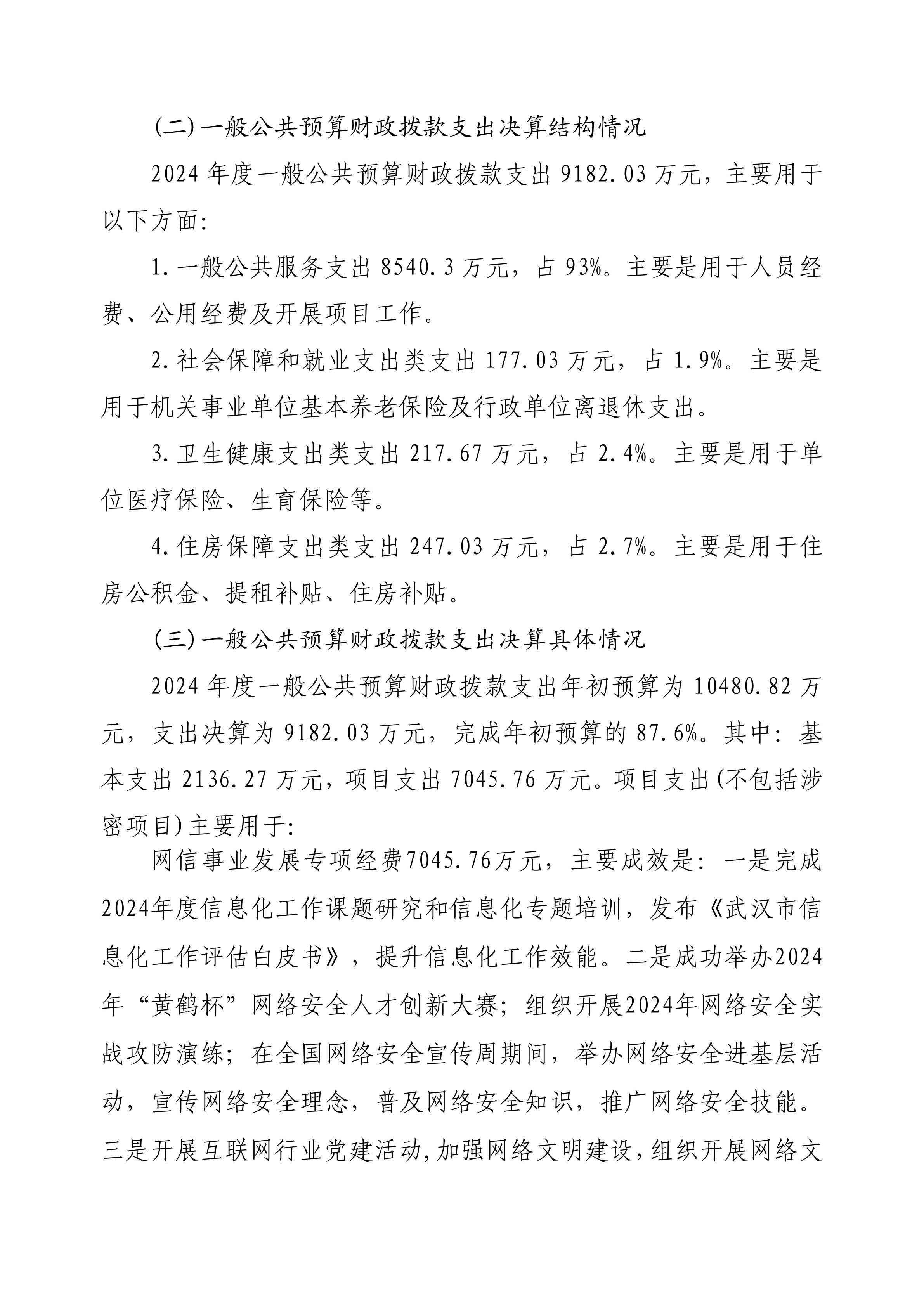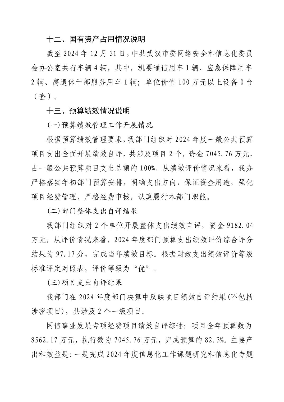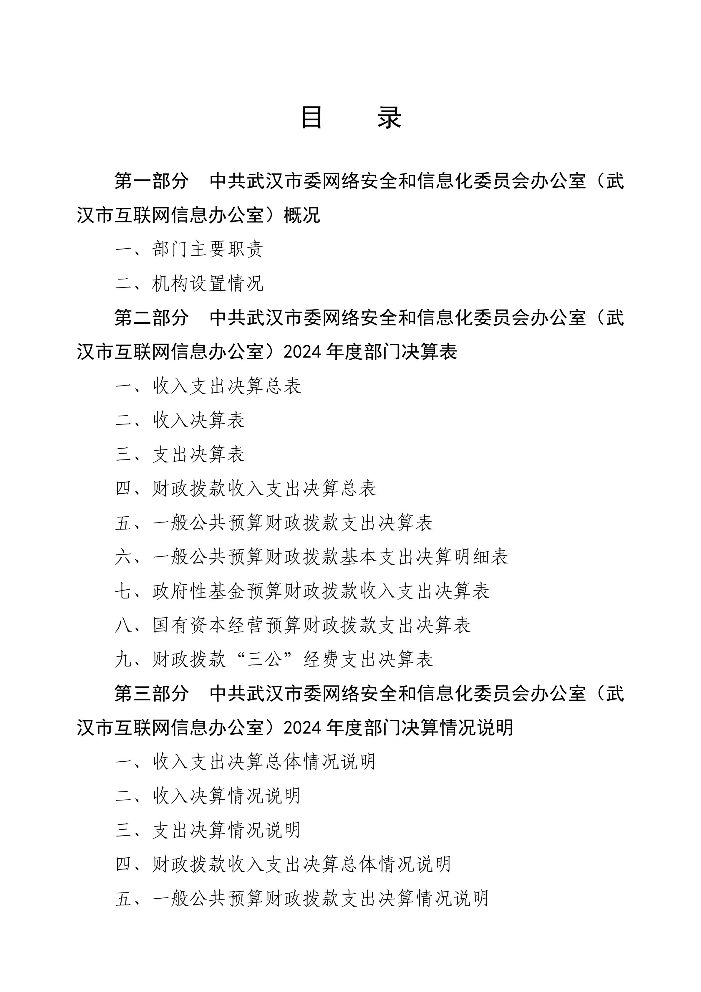 2024 年度中共武汉市委网络安全和信息化委员会办公室(武汉市互联网信息办公室)部门决算公开