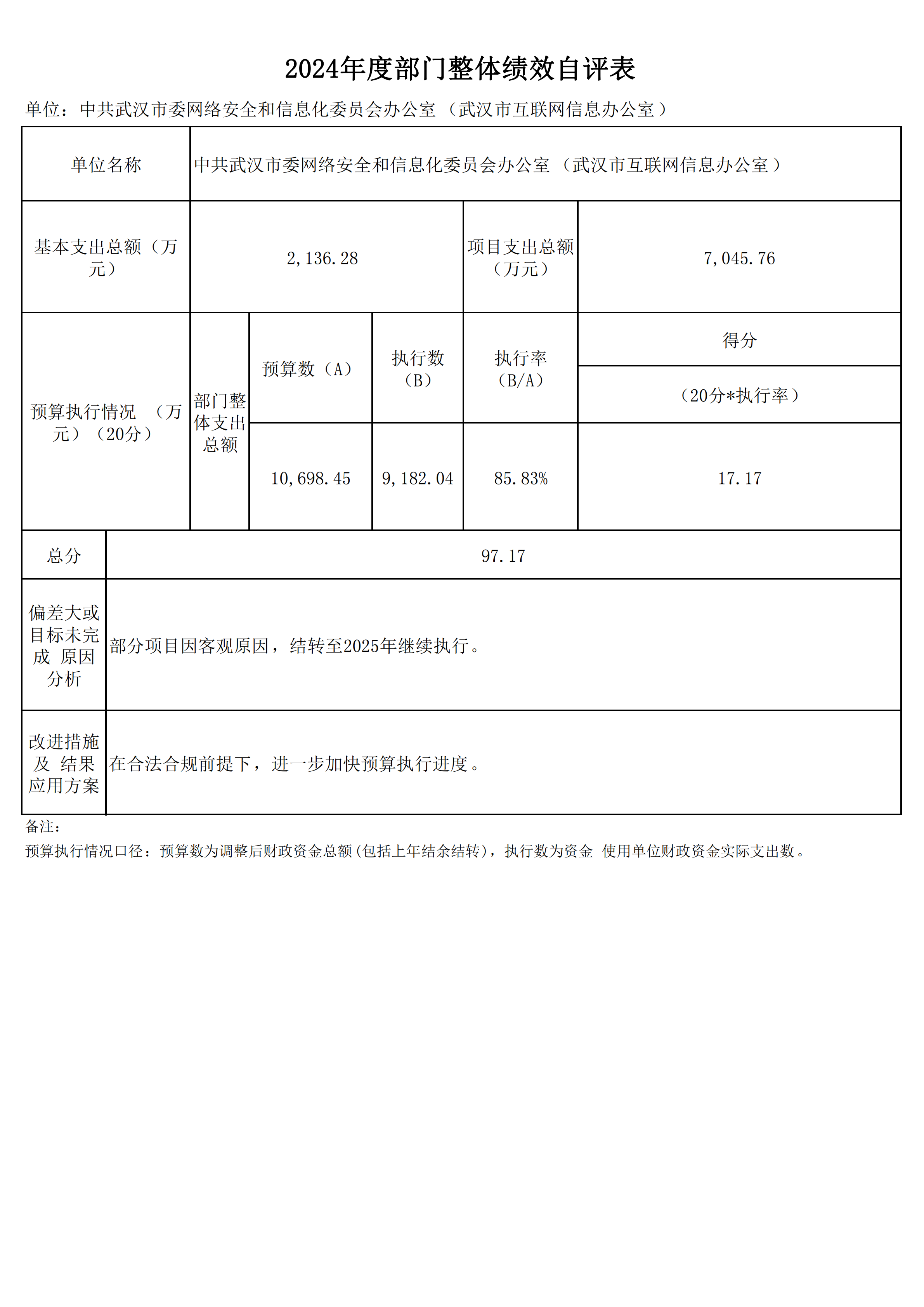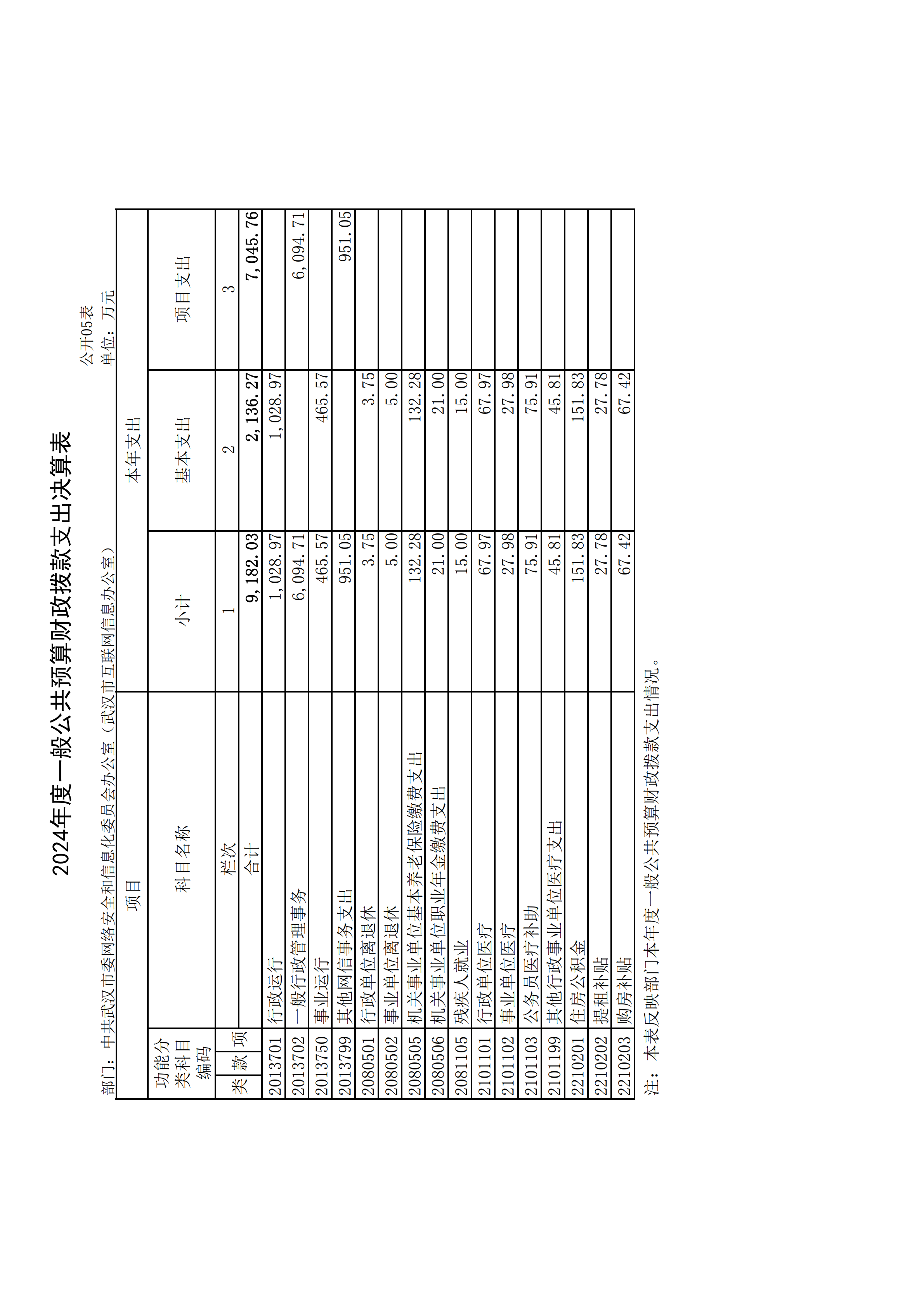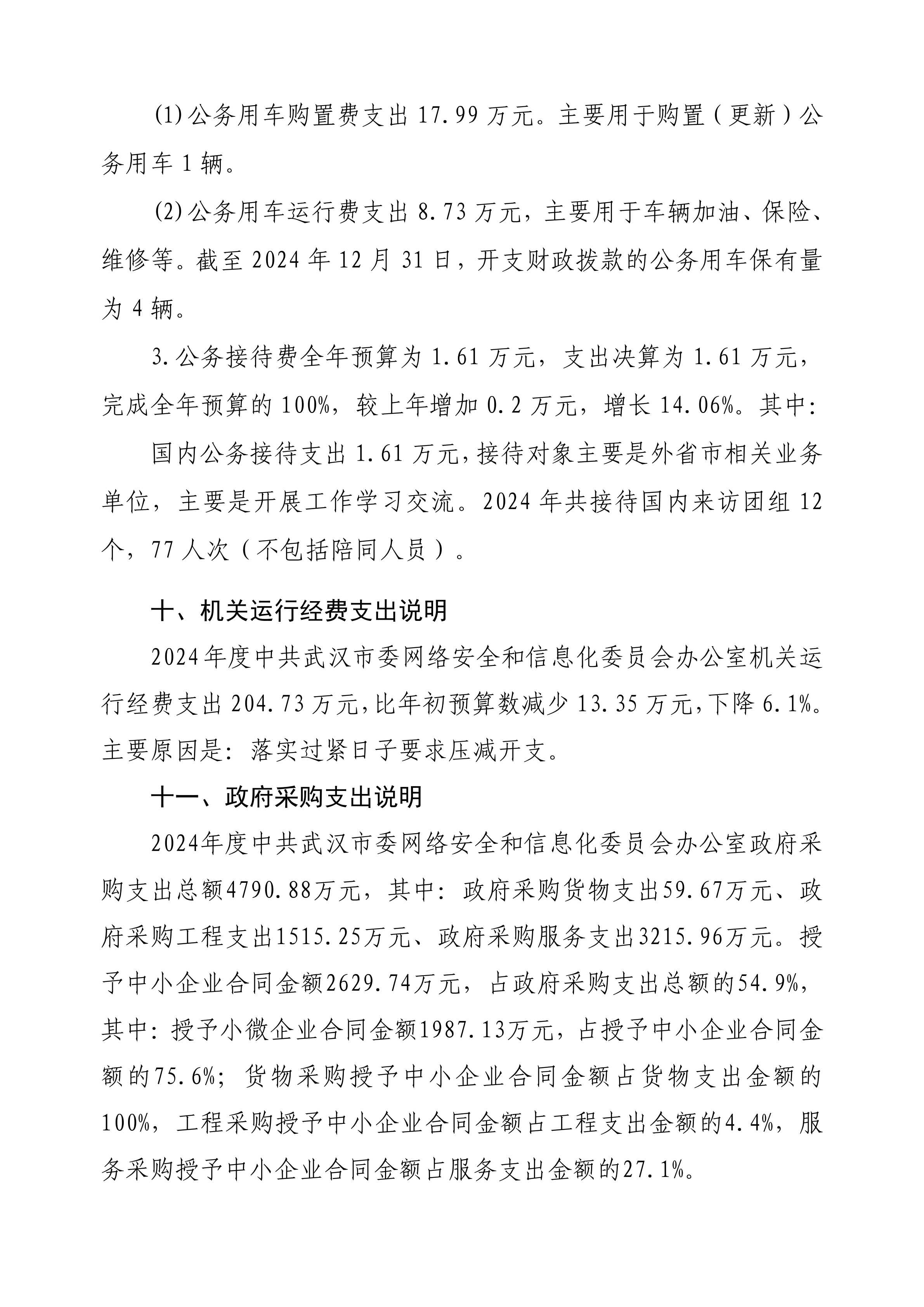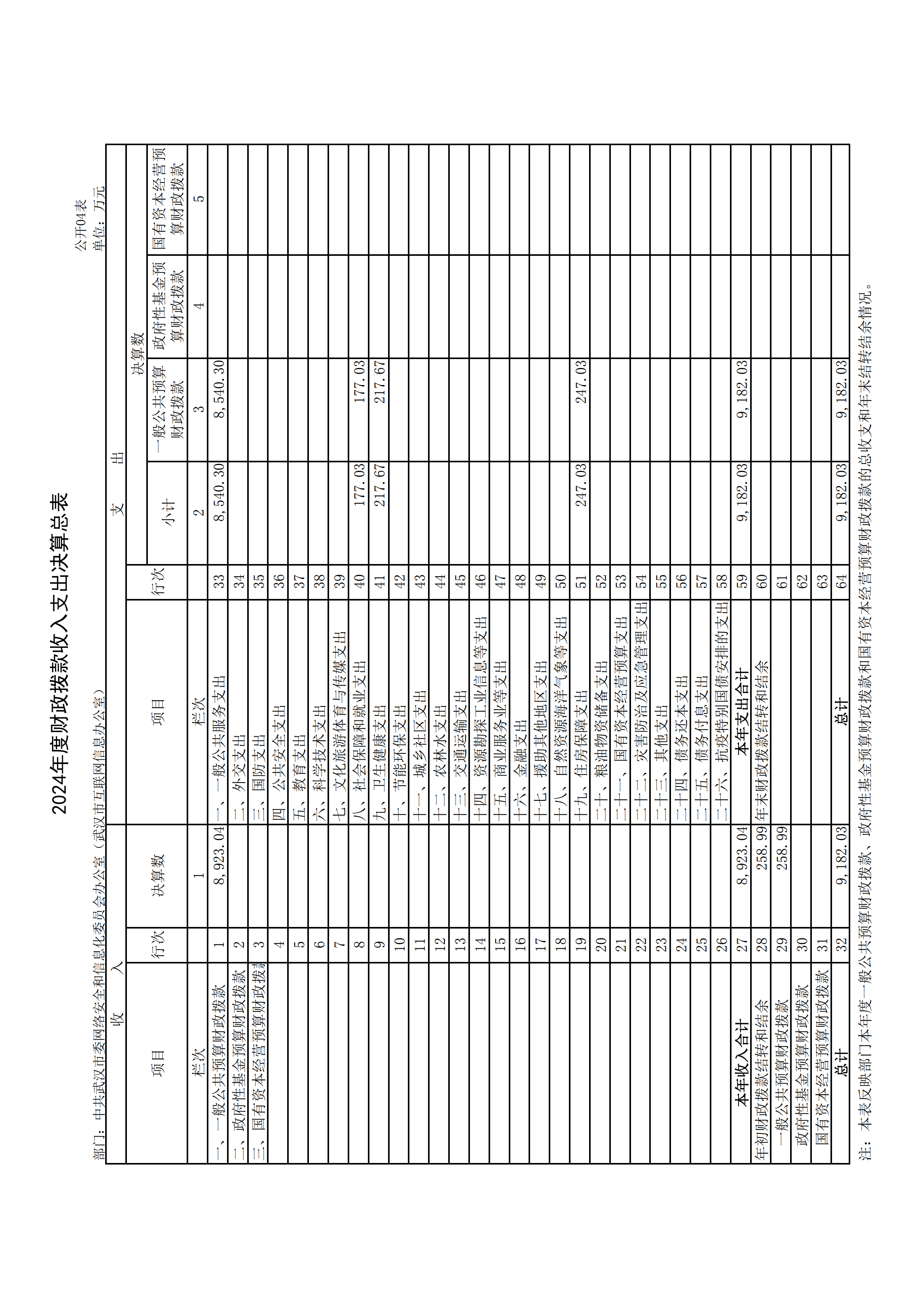 2024 年度中共武汉市委网络安全和信息化委员会办公室(武汉市互联网信息办公室)部门决算公开