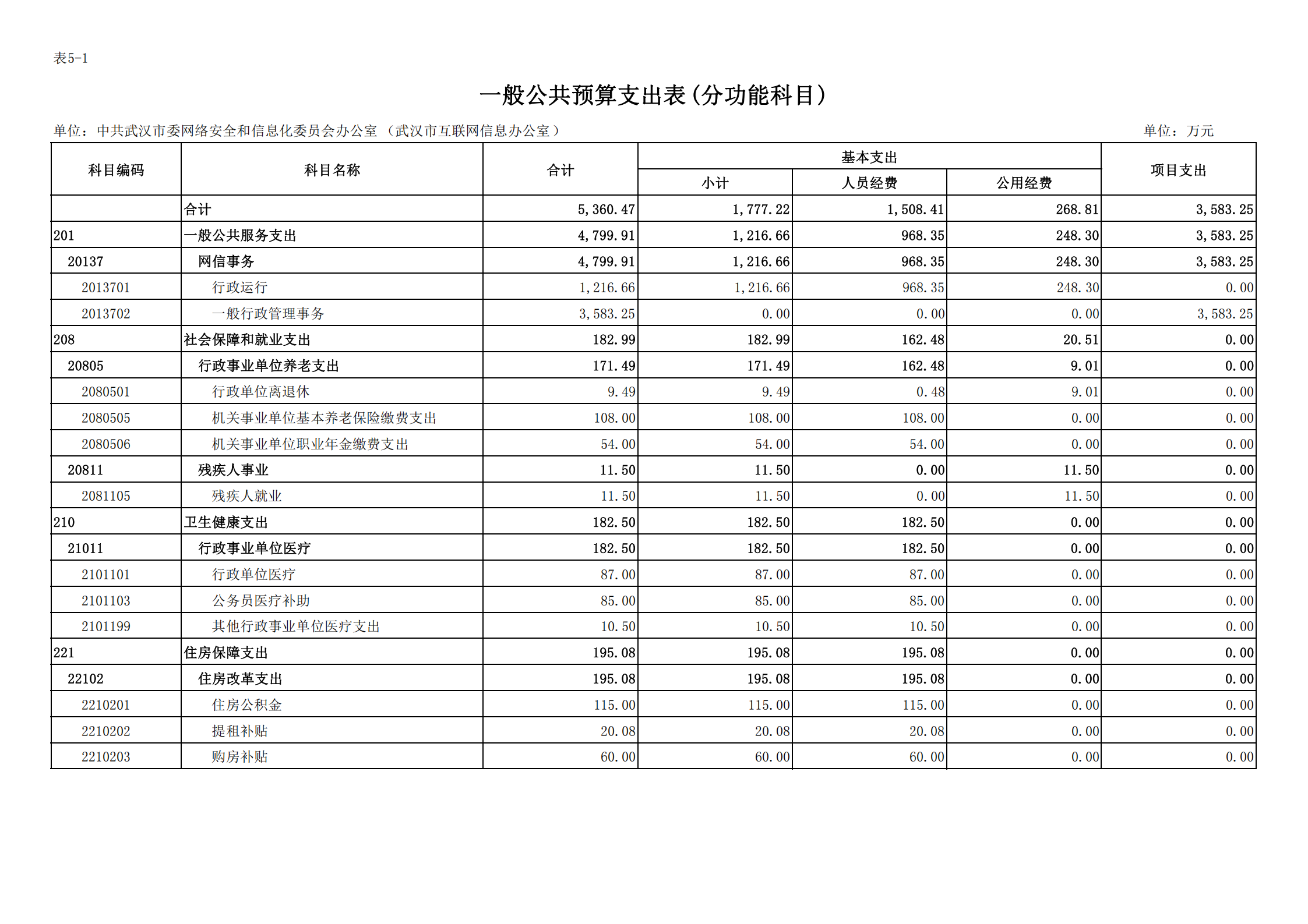 中共武汉市委网络安全和信息化委员会办公室(武汉市互联网信息办公室)2026年部门预算