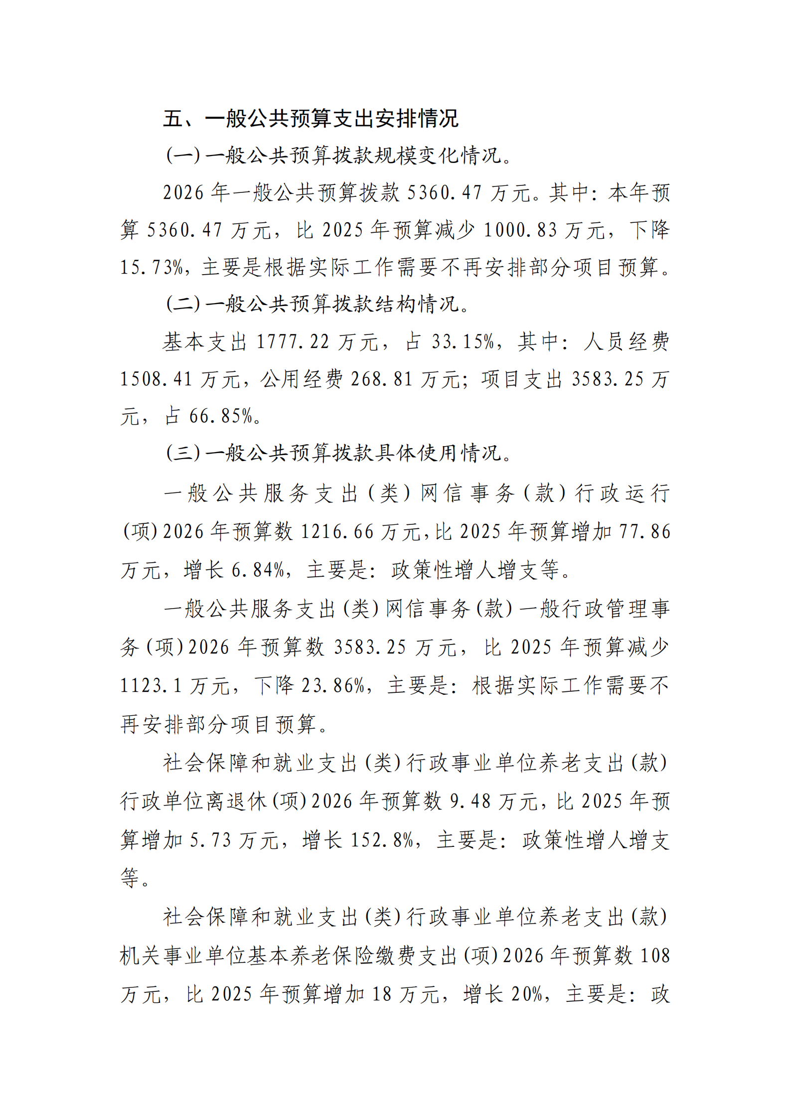 中共武汉市委网络安全和信息化委员会办公室(武汉市互联网信息办公室)2026年单位预算