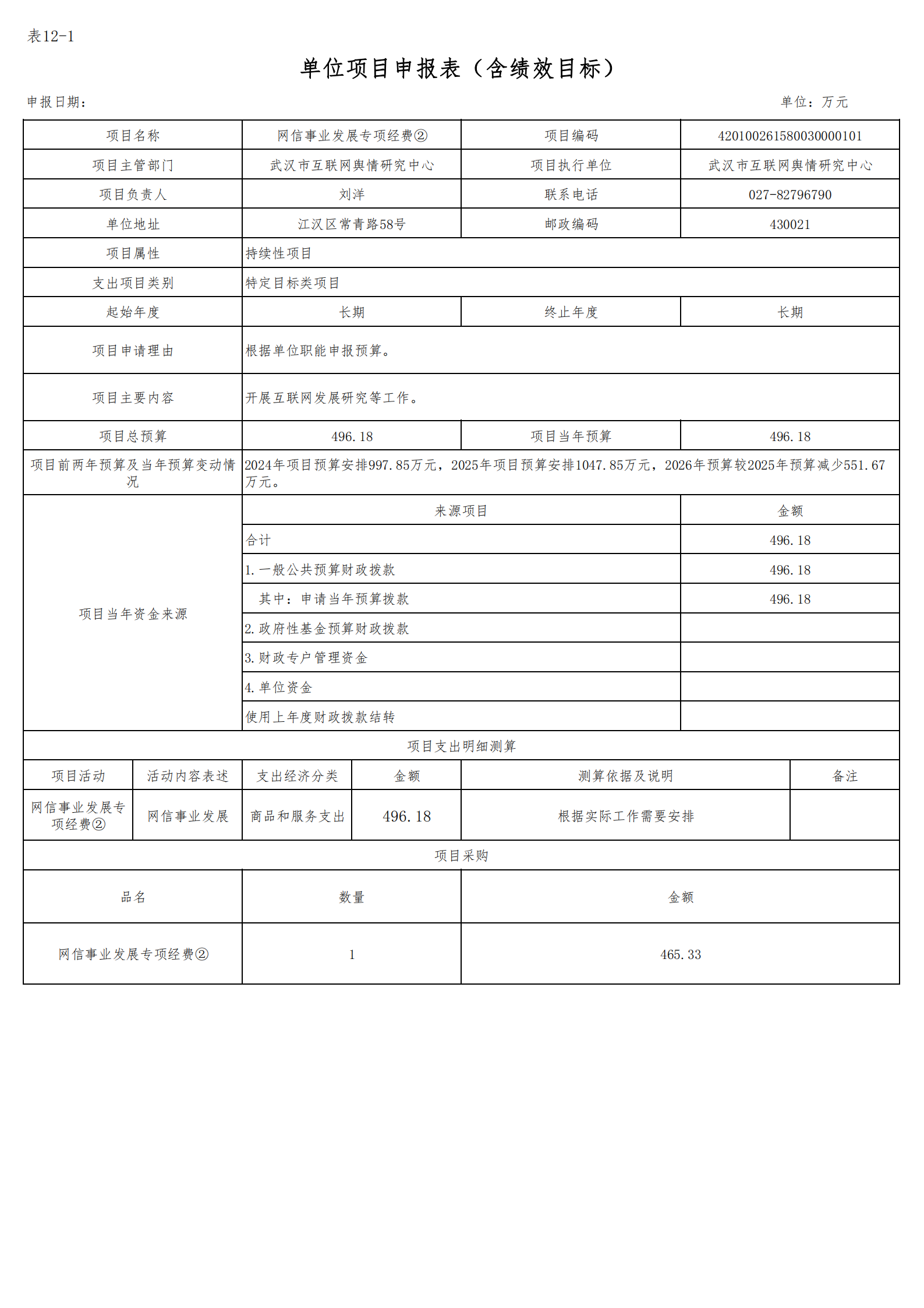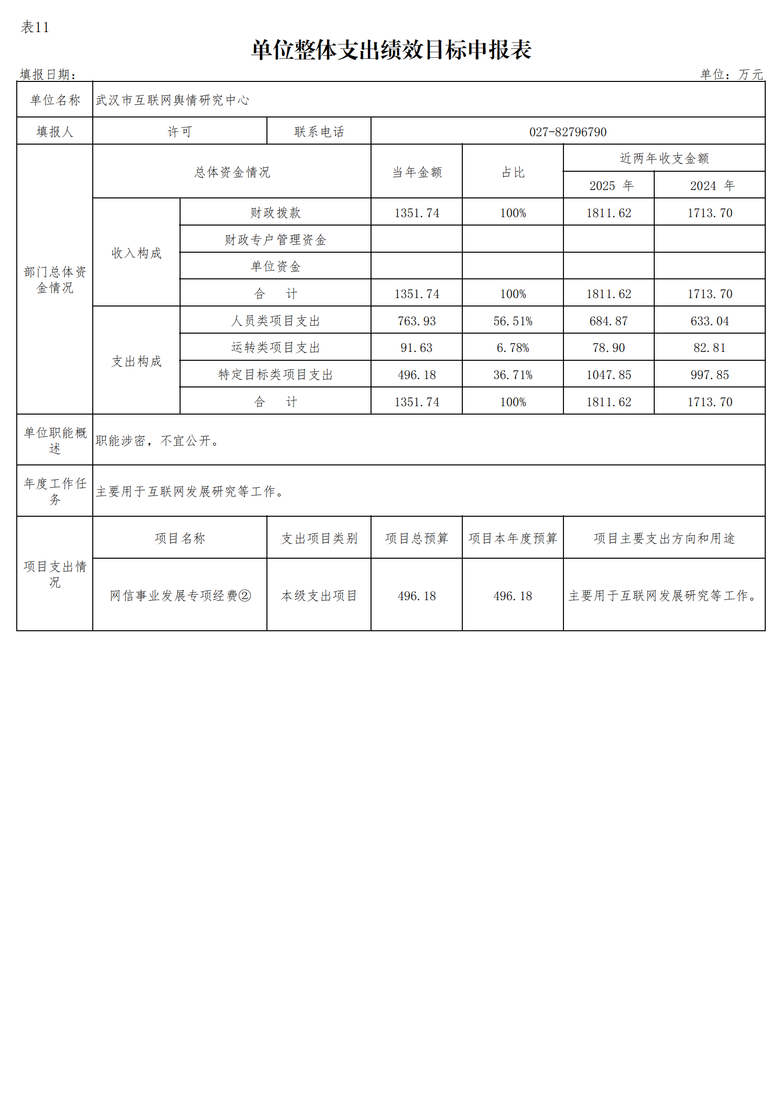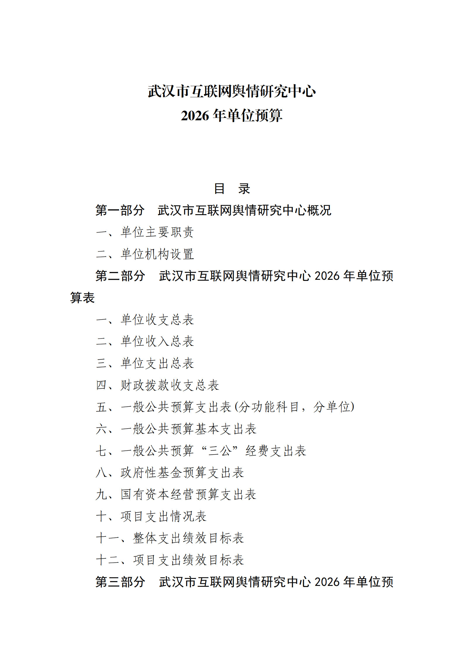 中共武汉市委网络安全和信息化委员会办公室(武汉市互联网信息办公室)2026年单位预算