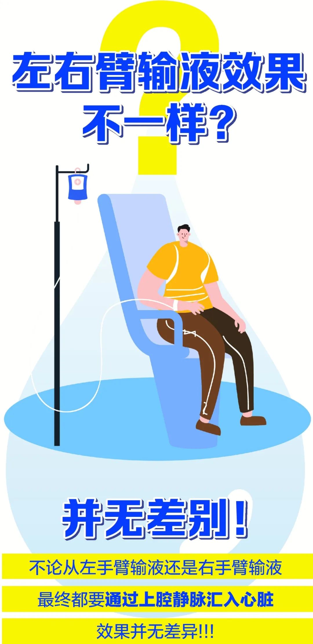 在人体的静脉系统中,上腔静脉和下腔静脉就像两个交通枢纽,分别主管人体上半身和下半身的静脉网络。自头颈部、上肢和胸部而来的静脉血,通过上腔静脉注入右心房。自下肢、盆部和腹部而来的静脉血,通过下腔静脉回流右心房。由此可见,不论从左手臂输液还是右手臂输液,最终都要通过上腔静脉汇入心脏,效果并无差异。