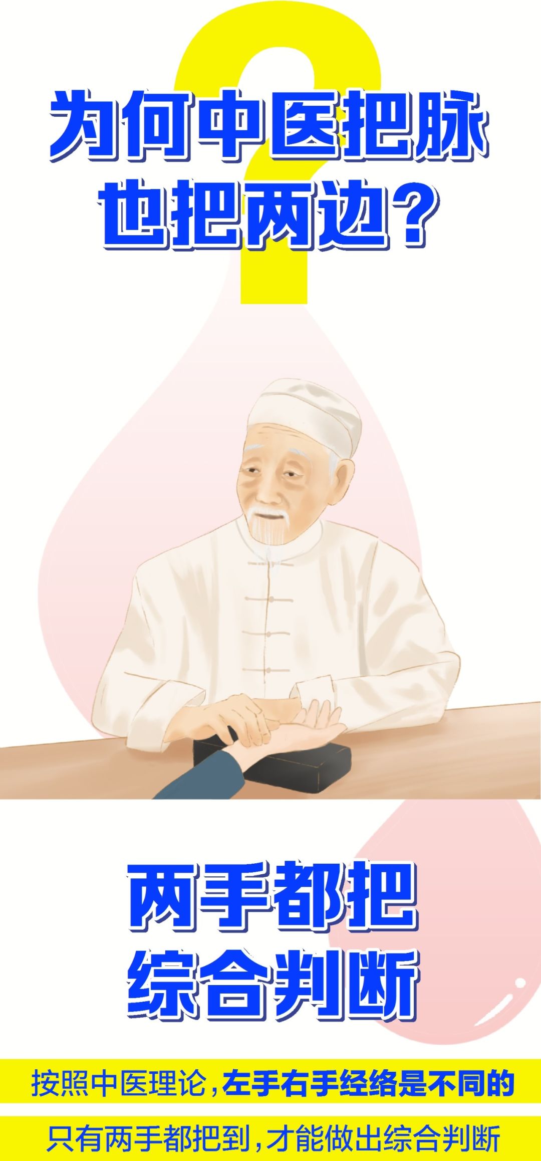 一个有意思的现象是,中医师把脉的时候也会把两边。武汉市中医医院肺系病科副主任医师丁念介绍,这是因为按照中医理论,左手和右手经络是不同的。左手寸、关、尺对应的是心、肝、肾,右手寸、关、尺对应的是肺、脾和命门。