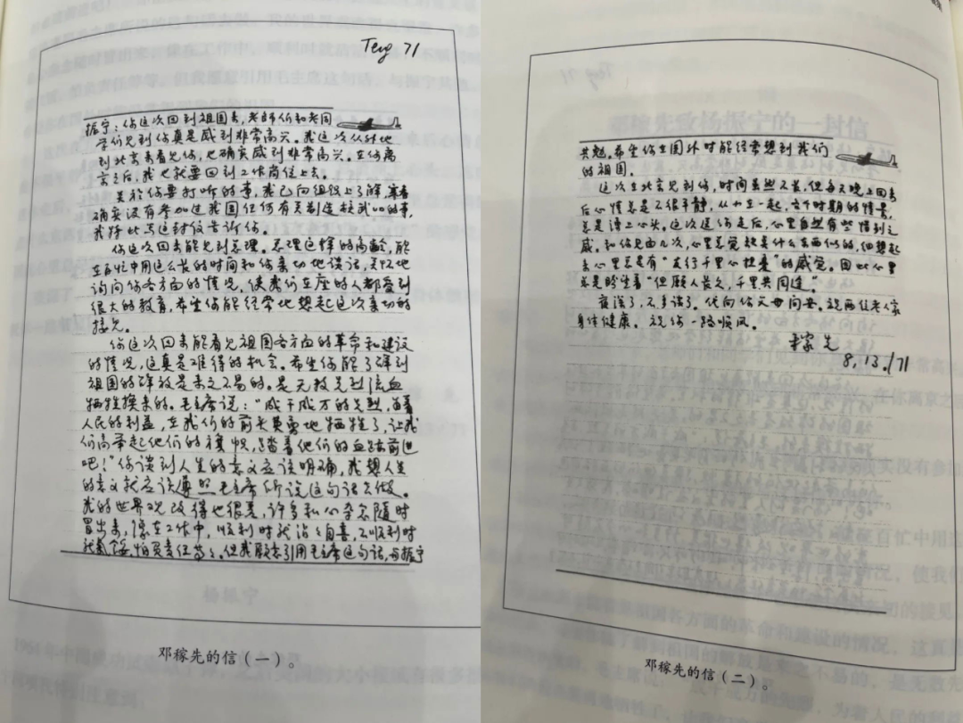 杨振宁先生在讲话中回忆,“中国第一颗原子弹爆炸以后,美国报纸上说毛主席派了飞机到陕北,把美国物理学家寒春接到北京帮助中国制造原子弹。”为了澄清这一谣传,杨振宁先生在1971年第一次访问新中国时,特意向中国原子弹领军人物,也是他的知心朋友邓稼先求证。