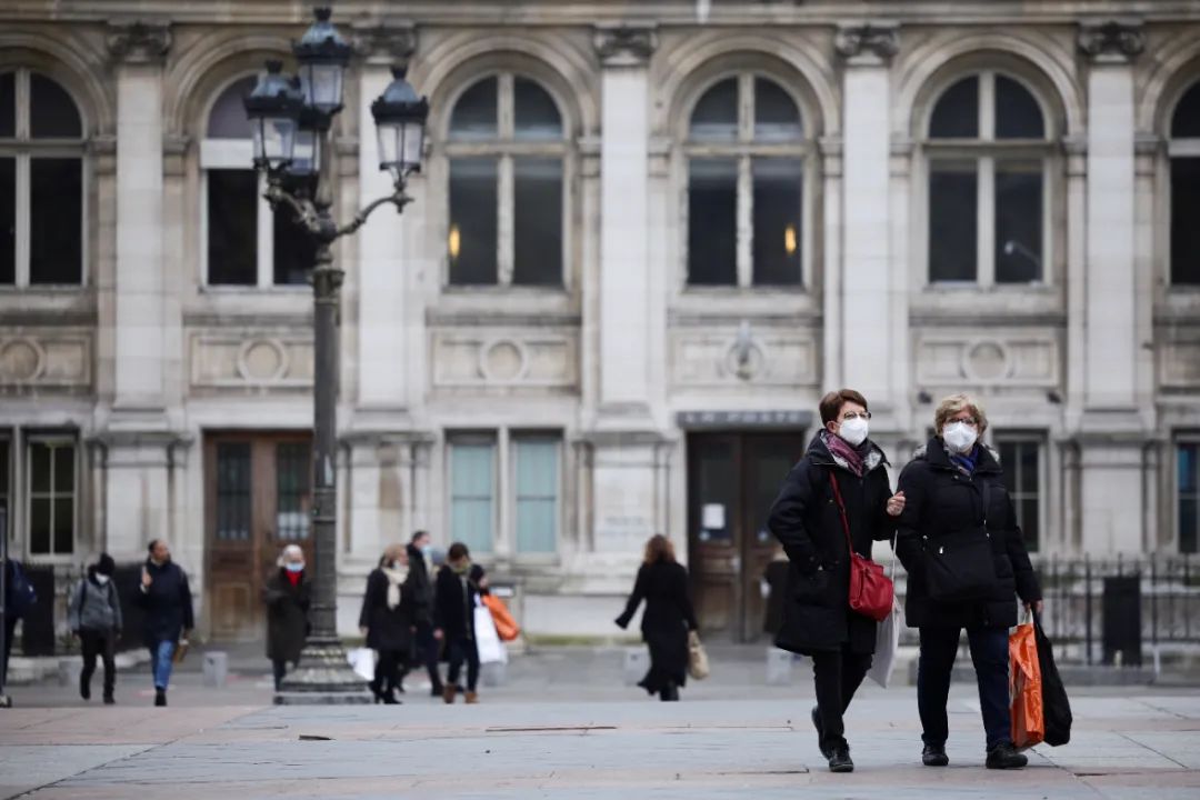 当地时间1月25日,法国巴黎,民众戴着口罩在街上行走。/IC photo