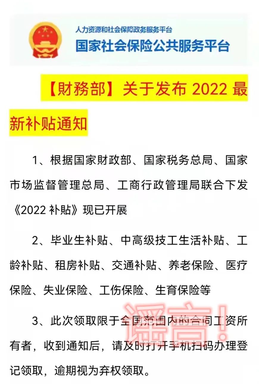 近期,您收到过“《2022补贴》已发、领取各类社保补贴、升级社保卡”的邮件或信息吗?