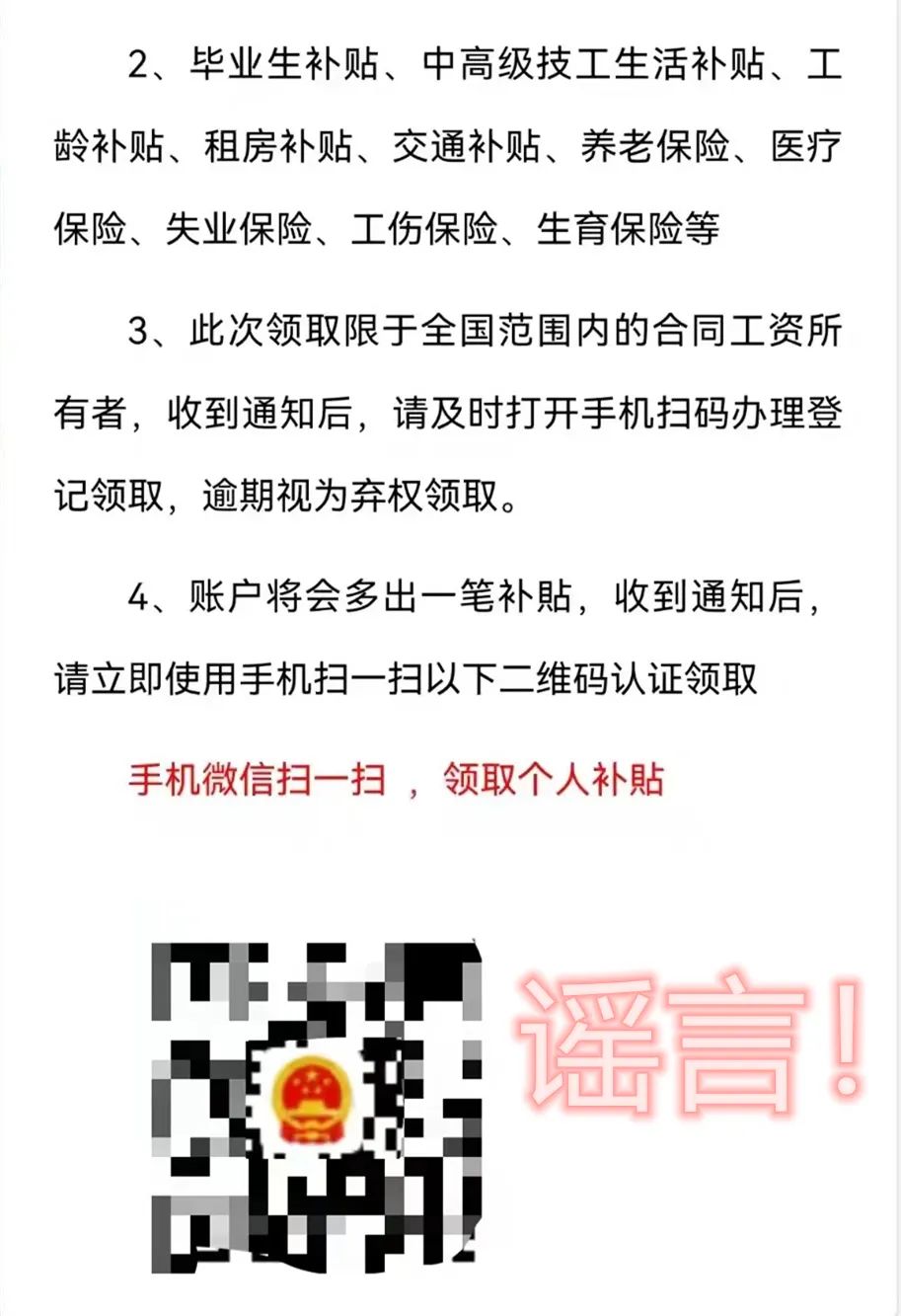 告诉您扫描就可以领取补贴