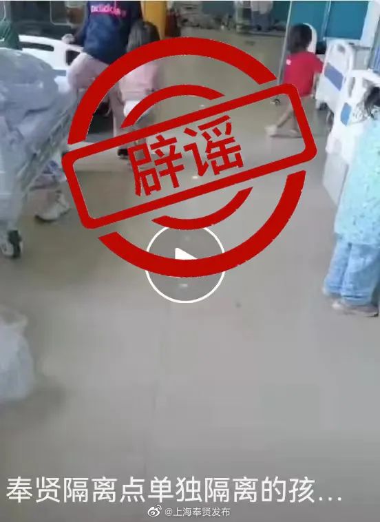 4月5日,有网民在个人视频号上发布了所谓“奉贤隔离点单独隔离的孩子们 ”视频,引发大量网民关注。经奉贤区有关部门核实,此为谣言,“上海奉贤发布”官方微博已发布辟谣公告。
