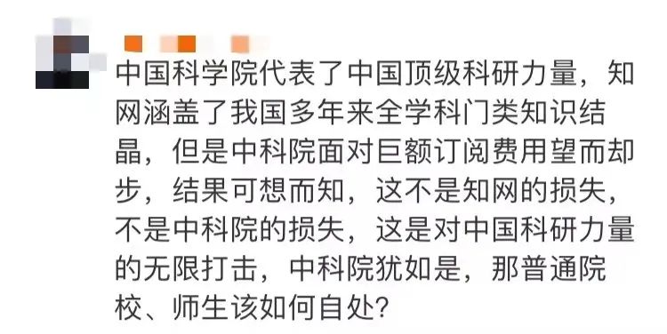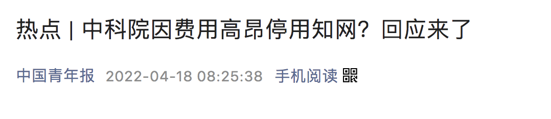 18日,中青评论发表《中科院都用不起,学术机构还要吃知网多少“苦”?》一文: