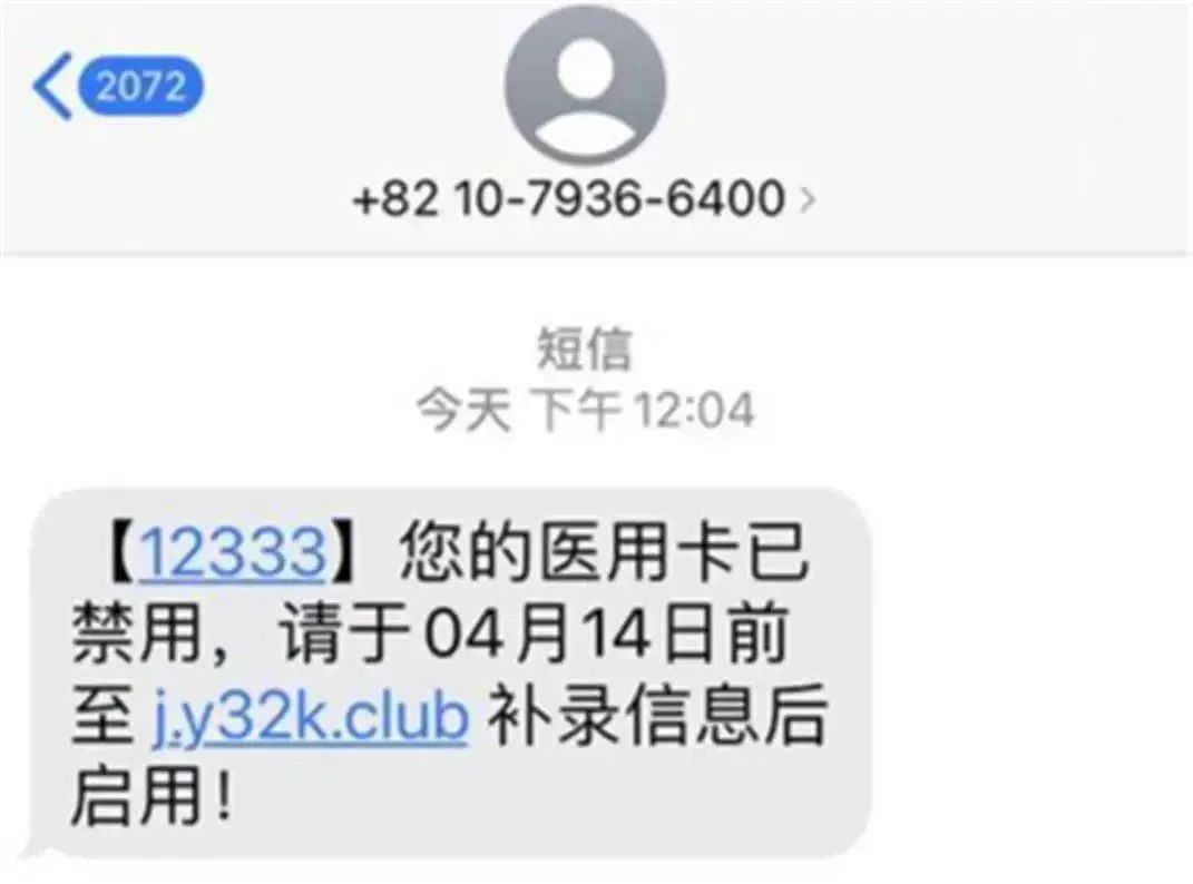 【12333】您的医用卡已禁用,请于04月14日前至j.y32K.club补录信息后启用!