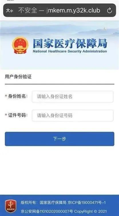 点击“立即办理”后,即跳转至一个有“国家医疗保障局”字样的网站,要求用户进行身份验证。