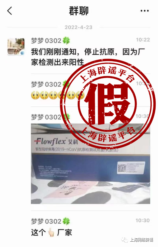 此外,长宁区不存在“虹欣街道”,但存在虹欣小区。虹欣居民区相关负责人表示,虹欣居民区从未有发布过任何关于“艾科”抗原有问题,要求居民暂时停止使用的信息,且图片中的用户与交流内容均与实际业主群聊天内容有较大出入。虹欣小区的业主在群聊中虽然提及过该公司,但没有出现过“虹欣居委会通知发放的艾科抗原有问题,要求居民暂时停止使用的”言语。网传消息极有可能是嫁接拼接形成。