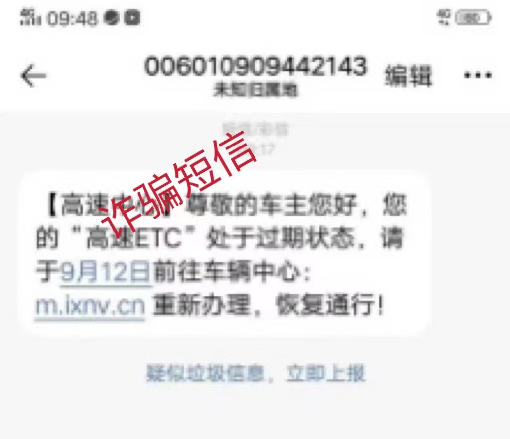 你以为收到的是车辆ETC“温馨提示”?可能是诈骗信息!