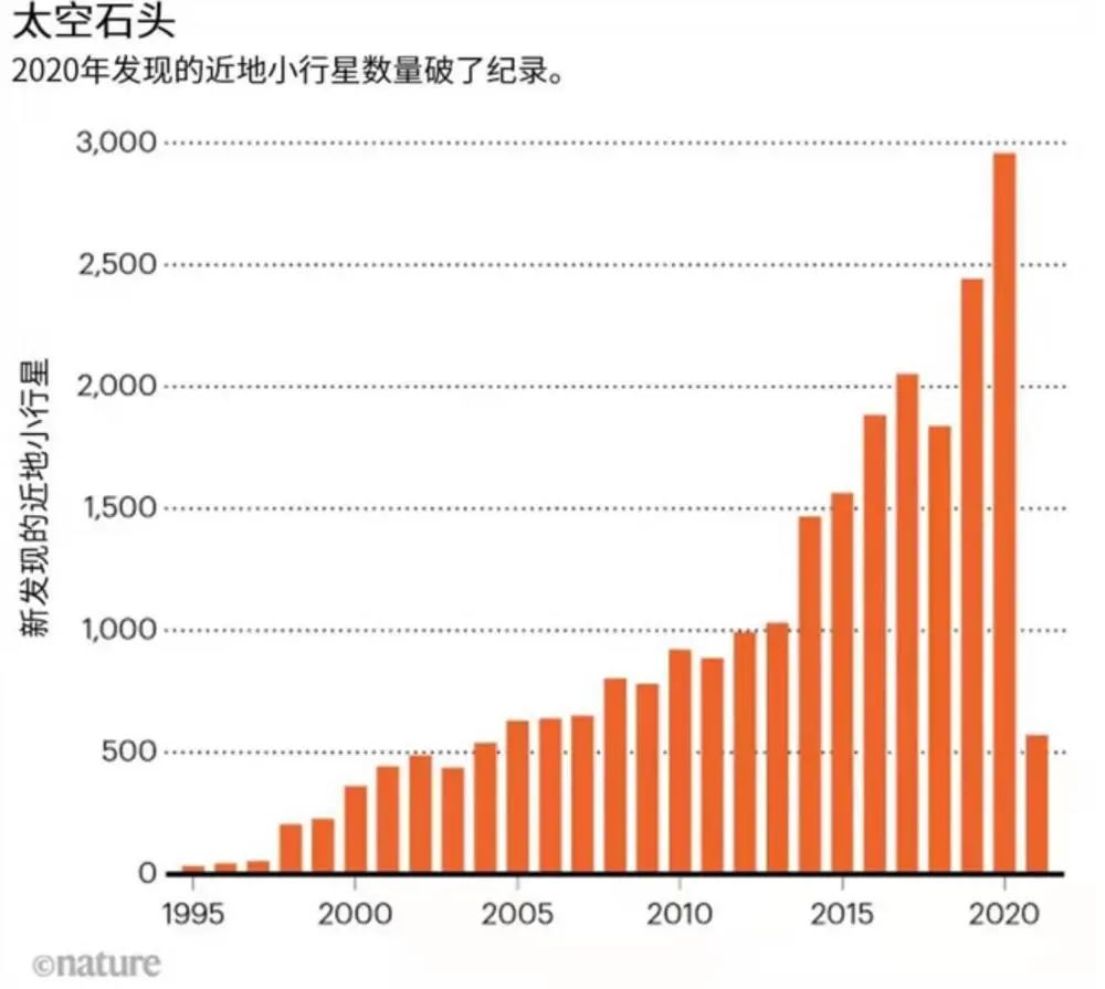 1998年,NASA启动了最大规模的近地小行星搜索计划,共找到超过2.5万个近地小行星。2020年更是打破纪录的一年。虽然新冠疫情扰乱了观测的节奏,但是天文学家依旧记录下了2958个前所未见的近地小行星。