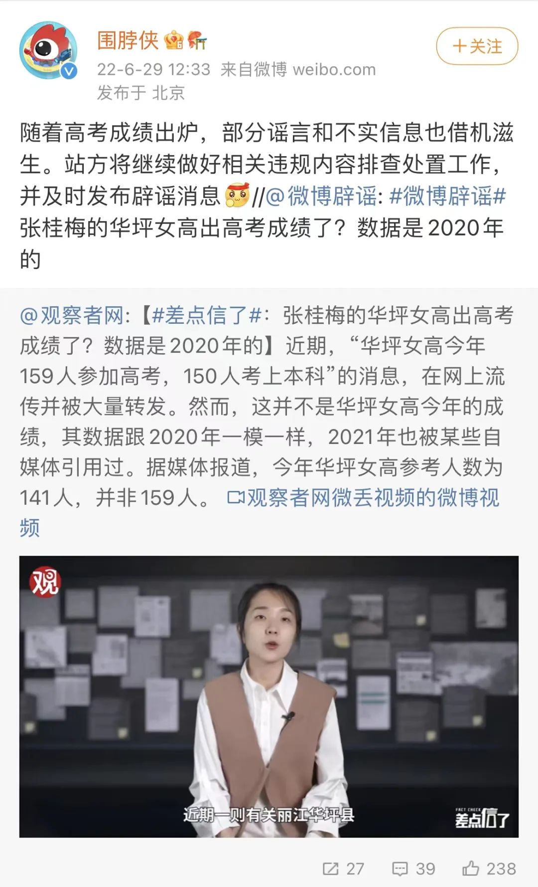 华坪女高高考人数实为141人