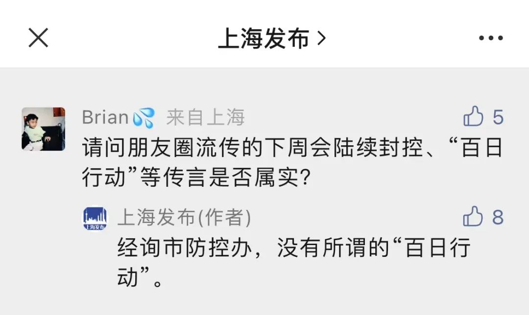 还有网友询问:请问朋友圈流传的下周会陆续封控、“百日行动”等传言是否属实?