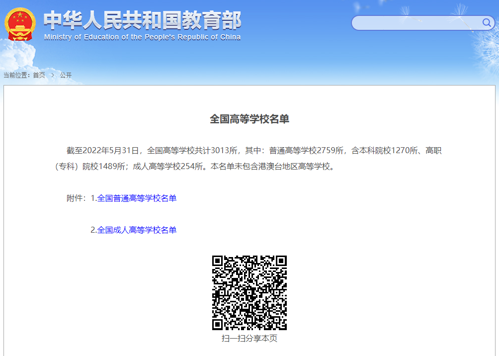 教育部已发布2022年具有高考招生资格的3013所全国高等学校名单,广大考生和家长在填报高考志愿时,可以通过登录教育部官网进行查询核实,认清正规高校,以防上当受骗。