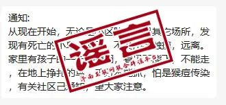 近日,这样一则消息在网络传播——“从现在开始,无论是小区院内还是其他场所,发现有死亡的小鸟、燕子,不要用手触摸,远离。家里有孩子的一定要强调,看见不能飞、不能走,在地上挣扎的鸟,千万不能抓,怕是猴痘传染,有关社区已通知,望大家注意。”