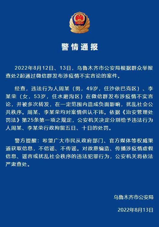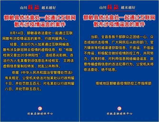 网上散布涉疫谣言,新疆两地公安依法查处