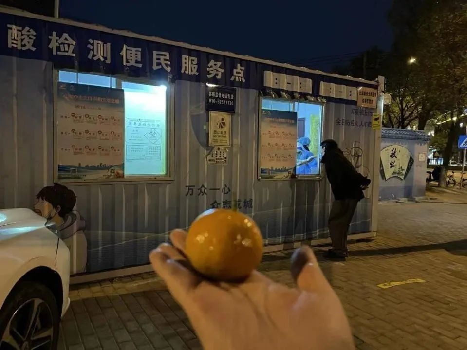 为验证传言的真实性,11月27日晚,央广网记者随机找到一处核酸检测便民服务点,在食用了橘子约2分钟后,且在没有饮水及食用其他食物的情况下,参与了核酸采样。
