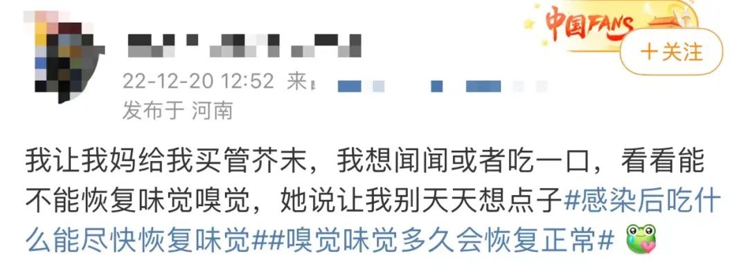 近日,在各大社交媒体平台上,有网友反映,感染康复后出现味觉、嗅觉减退的症状。