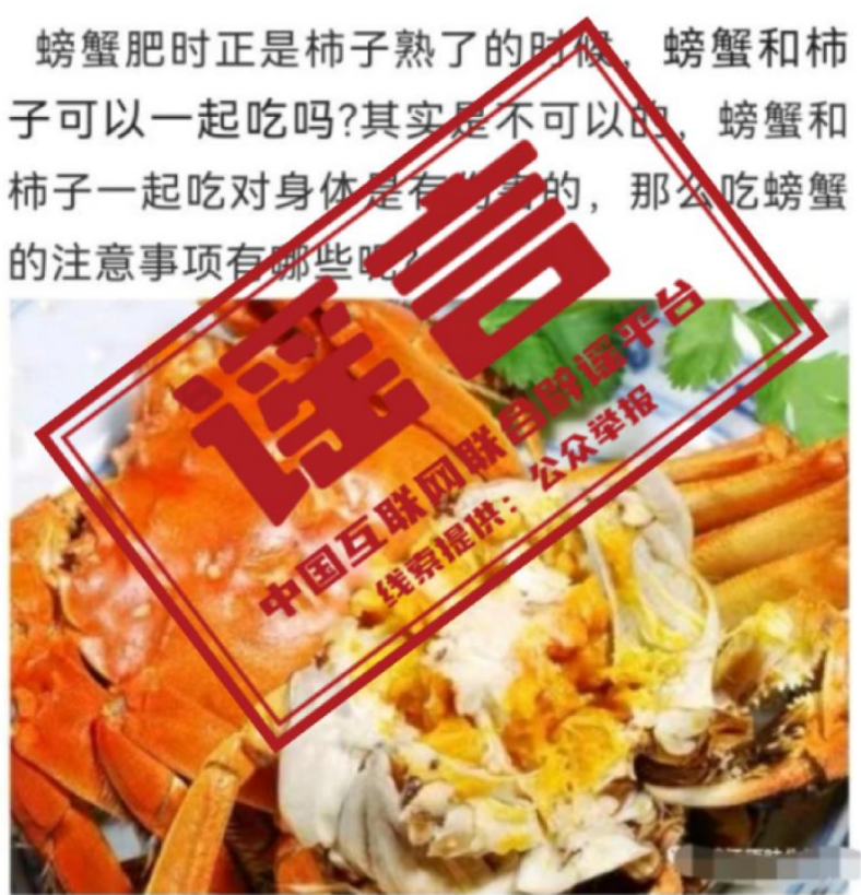 部分谣言披着“科普”的外衣,冠以“养生秘方”“防癌”“致癌”等噱头,在网上反复传播。“量子美容可除皱抗衰”“干细胞化妆品可修复皮肤、抗衰老”等化妆用品类谣言以“黑科技”“医疗科学知识”为包装,骗取不明真相的人消费;涉及食品的“伪科普”则添油加醋、夸大其词,有时还伴有明显的季节性特征。如秋季时值丰收时节,有关“柿子和海鲜一起吃等同砒霜”“柿子空腹吃或与奶制品混吃都会得结石”等谣言就会出现。这些小道消息看似是对身体健康的善意提醒,实为“抛开剂量谈毒性”的夸大其词,混淆公众视听,妨害身体健康。