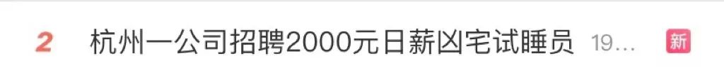2月9日,“杭州一公司2000元日薪招聘凶宅试睡员”冲上热搜。