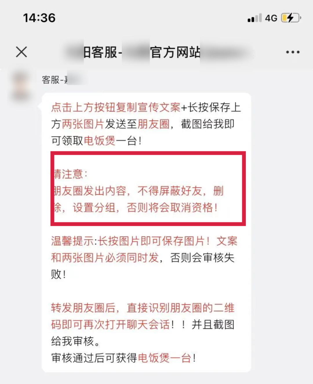 客服会要求把朋友圈的转发信息