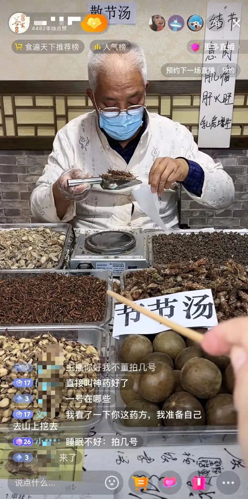 当网友在公屏上提问“是中药配方吗?”“老前辈是医生吗?”主播马上回应说,虽然写着“初级农产品”,确实是“中中”配方,这位老师也是“医医”“doctor”,是有证的,但是不能给你们看,要被封号的。