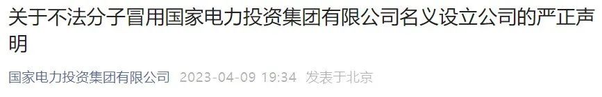 声明中说,上述3家公司及各级子公司均为假冒央企,国家电投集团已向有关部门报案、举报。