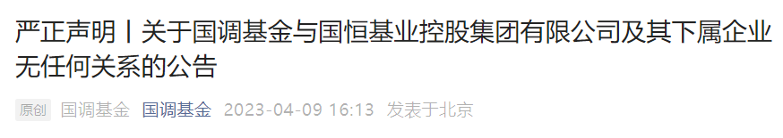 9日下午,中国国有企业结构调整基金股份有限公司(以下简称国调基金)也出面“打假”,国恒基业控股集团有限公司及其下属公司(北京国恒基业企业管理有限公司、山东国恒基业建设发展有限公司)与国调基金无任何隶属或股权关系,也不存在任何投资、合作、业务等关系,其一切行为均与国调基金无关。国调基金严正要求有关单位停止假冒我基金出资企业的行为。“对于任何不法机构(含不法人员)涉及侵害我基金权益的行为,我基金将采取必要法律措施,坚决维护自身合法权益。”
