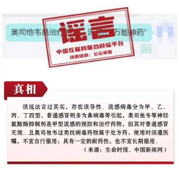 谣言7:奥司他韦是治疗感冒、流感的“万能神药”?