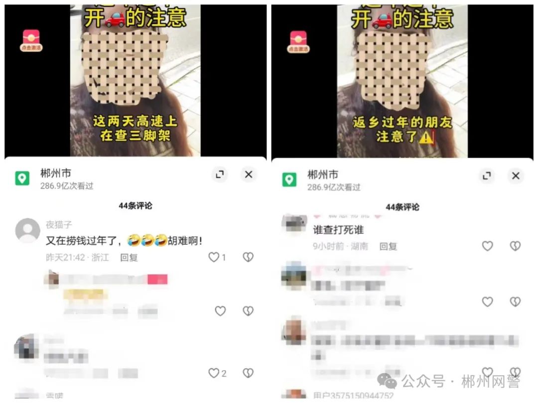 2024年1月31日,何某某编造制作了一条高速交警检查车辆的视频并配文:“最近过年开车返乡,这两天高速上查三脚架、灭火器、反光衣,违者罚200元。”发布在抖音上,引起网民关注、点赞,部分不明真相的网民评论交警“搞钱有办法”,造成恶劣影响。