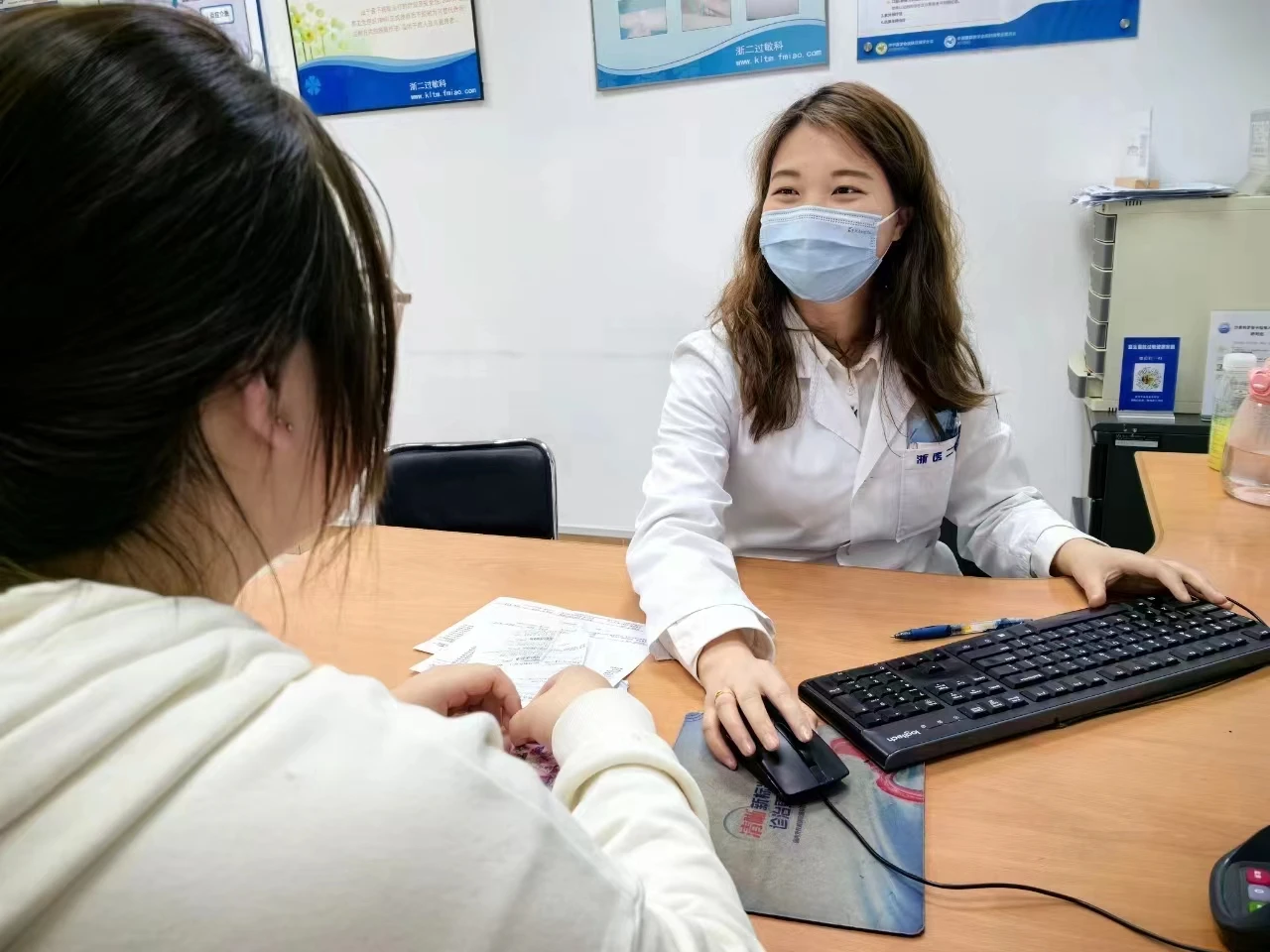 图片浙江大学医学院附属第二医院过敏(变态反应)科主治医师杨波云(右一)为患者就诊。(受访者供图)