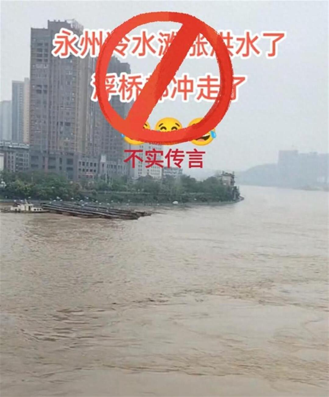记者又联系上该浮桥的管理维护单位湖南省冷水滩运贸总公司。该公司相关负责人称,该桥由30多艘舟组成,早在洪水过境之前,他们就将浮桥进行拆解,并将这些舟运至河东水流较平缓的区域,并没有舟被洪水冲走。他还称,每年洪水来临前,他们都会提前将舟运走,“洪水将浮桥冲走”的说法不实。