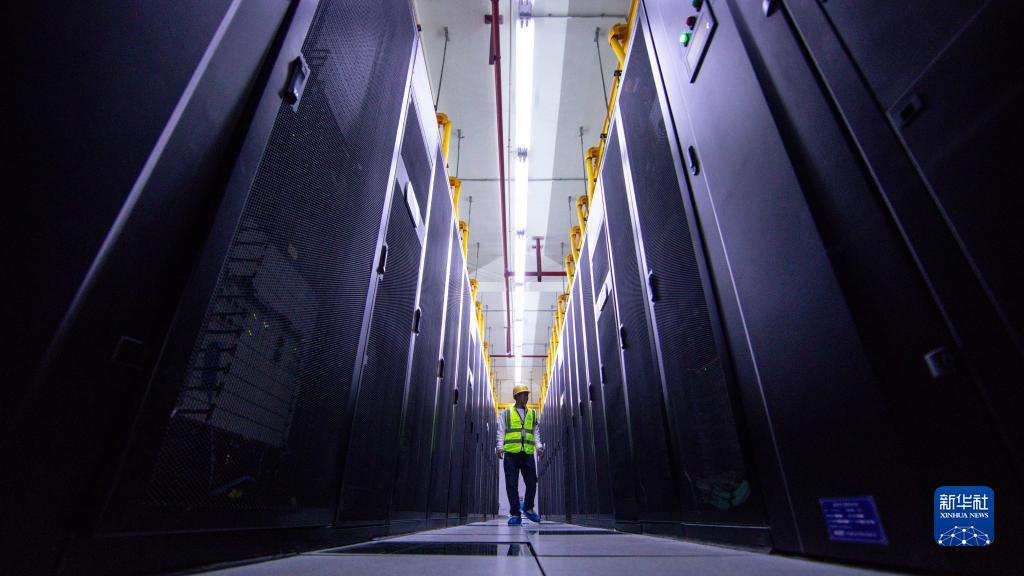 工作人员在中国移动贵州数据中心机房内巡检(5月24日摄)。新华社记者 欧东衢 摄