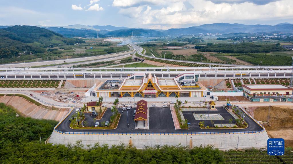 这是中老铁路国内段的玉(溪)磨(憨)铁路野象谷车站一景(9月29日摄,无人机照片)。新华社记者 胡超 摄