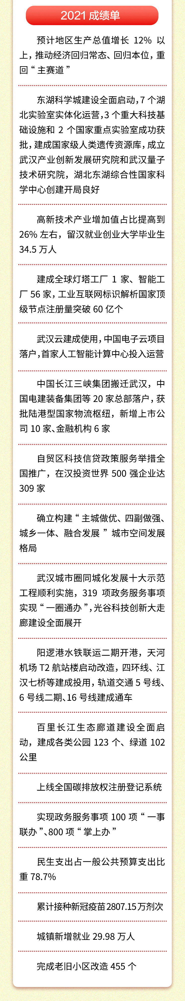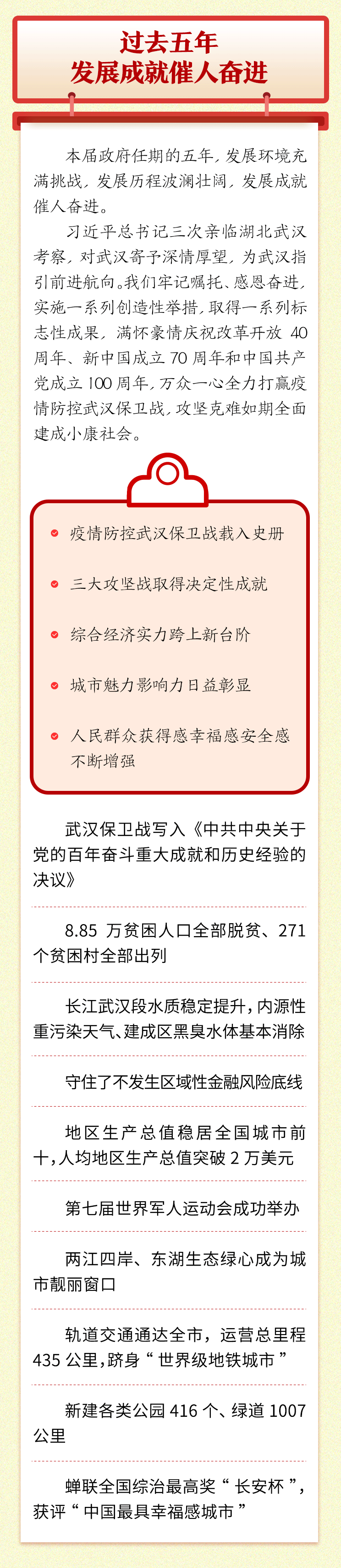1月11日,武汉市第十五届人民代表大会第一次会议开幕。现场,武汉市政府工作报告新鲜出炉!