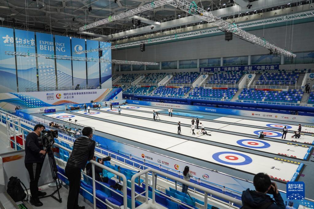 2021年4月6日,运动员在冰壶项目测试活动中。2022年北京冬奥会将国家游泳中心“水立方”改造为“冰立方”,用作冰壶项目比赛场馆,有效减少建设投资,更让夏奥场馆焕然新生,拓展多元赛后经营能力。新华社记者 彭子洋 摄