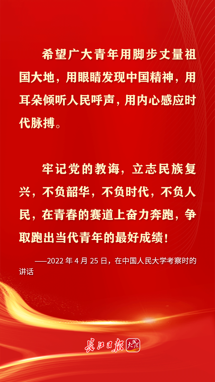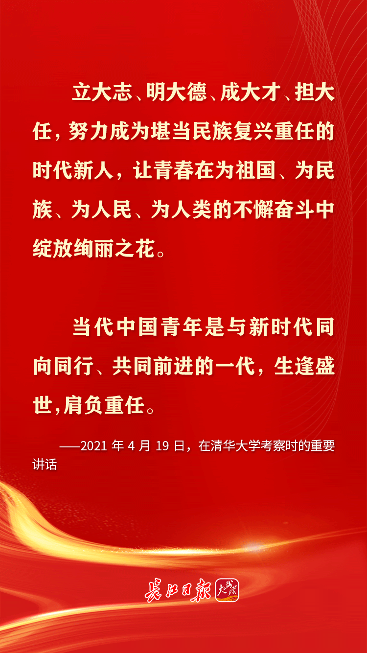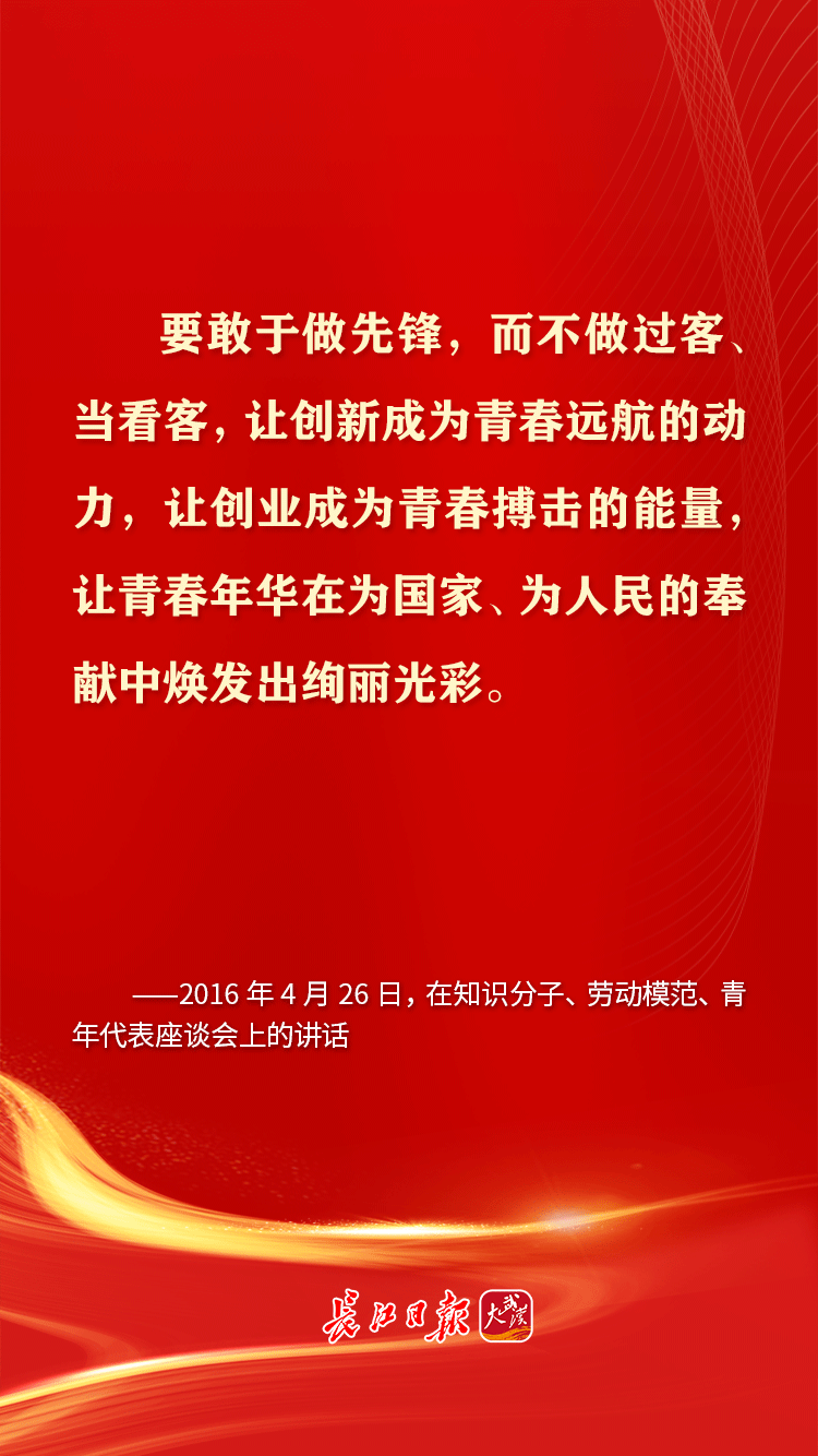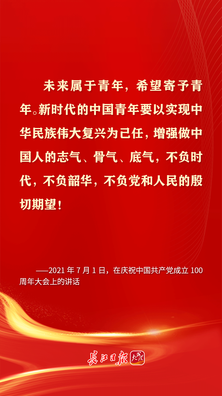 青年是早晨八九点钟的太阳,是祖国的未来、民族的希望。习近平总书记十分关心青年成长,党的十八大以来,多次通过座谈、演讲等方式对青年寄予殷切期望,鼓励青年追求梦想、努力奋斗。在共青团成立100周年的日子,让我们重温习近平总书记对青年的那些青春寄语。