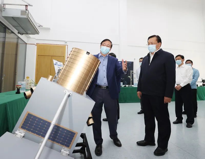 王忠林来到武汉大学宇航科学与技术研究院,参观卫星环境实验室及科研成果展示,勉励研究院继续围绕国家战略需求和湖北经济社会发展需要,加强科学研究和成果转化,推动更多技术从实验室走向市场。