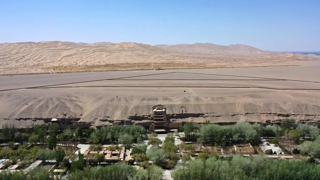 这是4月18日拍摄的莫高窟窟区(无人机照片)。新华社记者 陈斌 摄