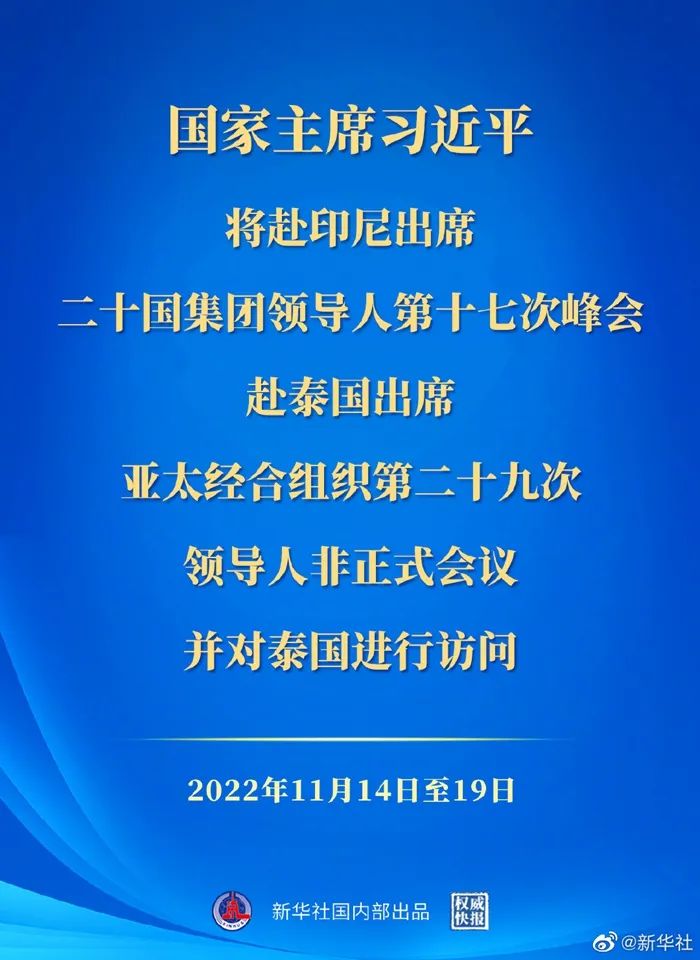 应泰王国总理巴育邀请,国家主席习近平将于11月17日至19日赴泰国曼谷出席亚太经合组织第二十九次领导人非正式会议并对泰国进行访问。