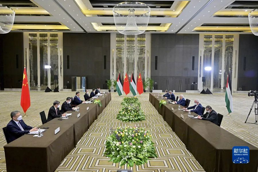 阿巴斯表示,巴勒斯坦人民对同中国人民的友好关系深感自豪。中国是巴勒斯坦真诚和可信赖的朋友,始终坚定支持巴勒斯坦人民的正义事业,在政治、经济、道义等各方面均给予巴方全面、无条件支持,全体巴勒斯坦人民都对中国人民怀有诚挚感情。中方在国际场合秉持的立场正义公道,提出的倡议主张积极且富建设性,巴方坚定同中国站在一起。巴方将继续坚定恪守一个中国原则,坚定支持中方在涉台、涉港、涉疆等问题上的正当立场,坚定支持并积极参与共建“一带一路”,愿同中方继续加强各领域合作。巴方期待同中方一道,推动明天举行的首届阿中峰会取得成功。
