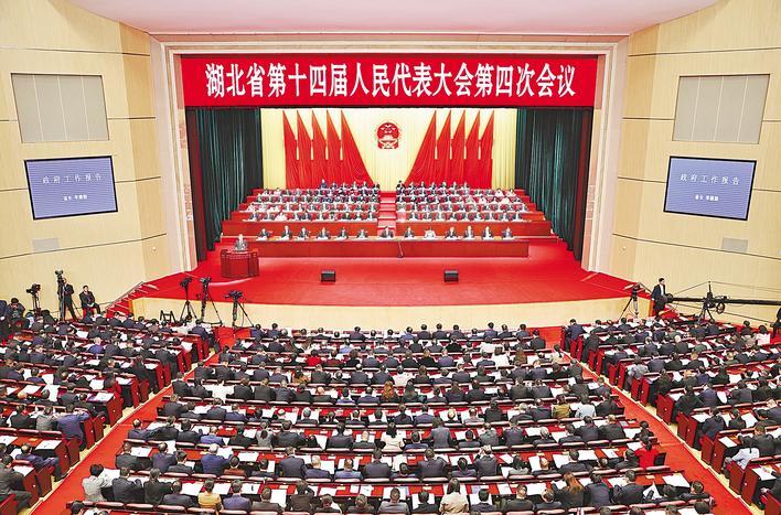 湖北省十四届人大四次会议开幕 王忠林主持大会 李殿勋作政府工作报告 孙伟诸葛宇杰等出席