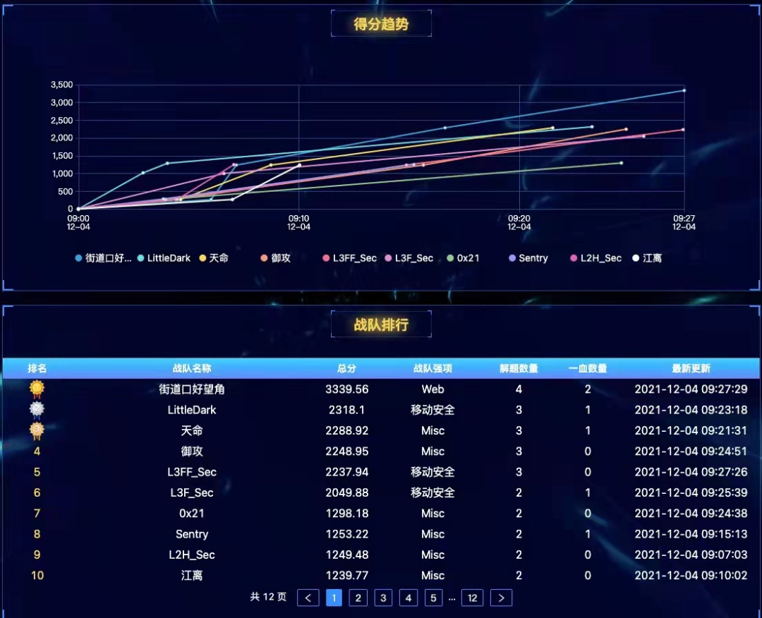 这114支战队的选手,都是来自武汉大学、华中科技大学等各大高校计算机和网络安全相关专业的在校生。学子们对安全攻防大赛充满了激情,也使得比赛过程异常激烈——仅开赛半小时,就有112支战队上线,1小时后全部战队就位,开始冠亚季军的角逐。