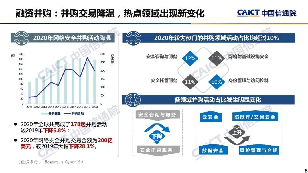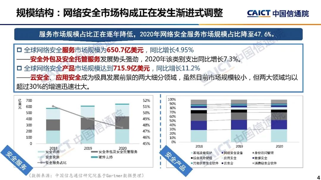 白皮书对2020年网络安全市场规模和结构总体情况进行概述,并对国内外政策、技术产品体系、企业经营、资本赋能、产业生态等内外部因素的最新发展动态进行重点分析,多维度展现网络安全产业发展态势。