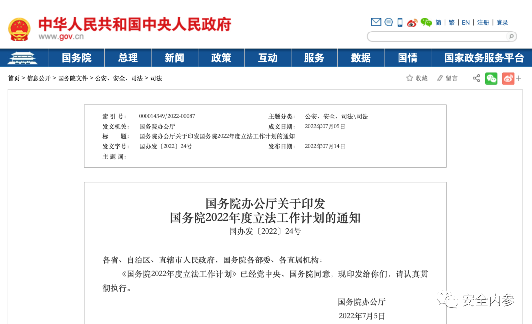7月14日,据中国政府网消息,国务院办公厅发布《国务院2022年度立法工作计划》。南都记者注意到,在拟制定、修订行政法规中提及,由网信办组织起草《网络数据安全管理条例》,由网信办起草《未成年人网络保护条例》。