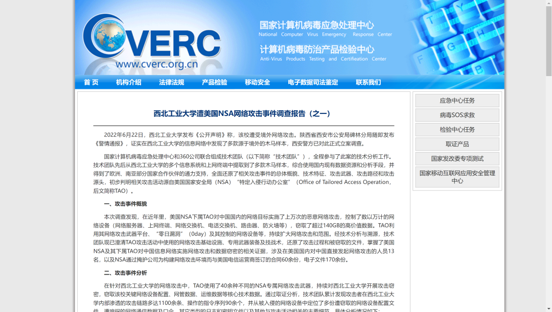 9月5日,国家计算机病毒应急处理中心发布《西北工业大学遭美国NSA网络攻击事件调查报告(之一)》称,国家计算机病毒应急处理中心和360公司联合组成技术团队(以下简称“技术团队”),全程参与了此案的技术分析工作。
